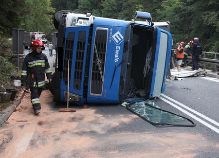 Galeria: Wywrócił się ciągnik siodłowy z naczepą