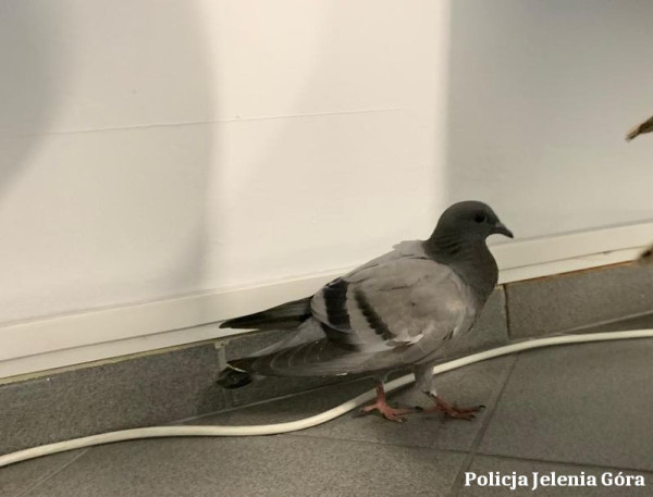 Galeria: Nietypowy gość w Komisariacie. Policjanci pomogli rannemu gołębiowi.