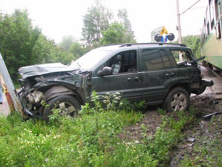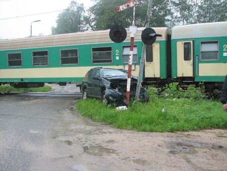 Galeria: Pociąg potrącił jeepa